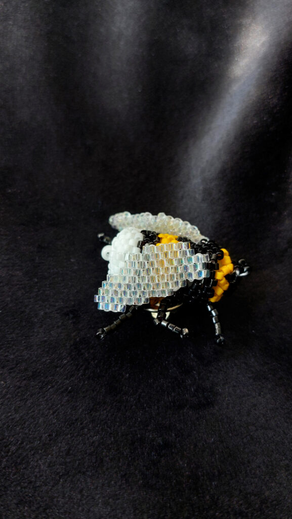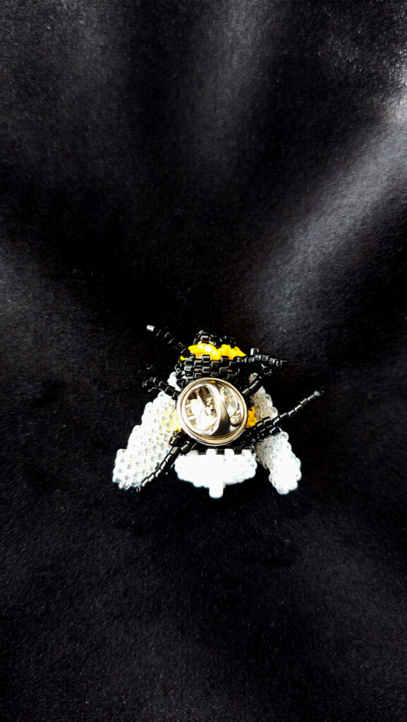 De sluiting is gemaakt van roestvrij staal, dus ook bij een gevoelige huid veilig te dragen. De pin is stevig, dus het is aan te raden het niet op dunne stoffen te gebruiken om schade aan de stof te voorkomen. Er zijn meer dan 500 kraaltjes verwerkt in dit sieraad.