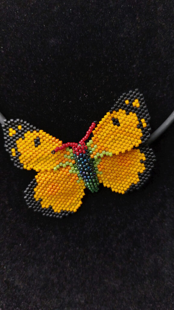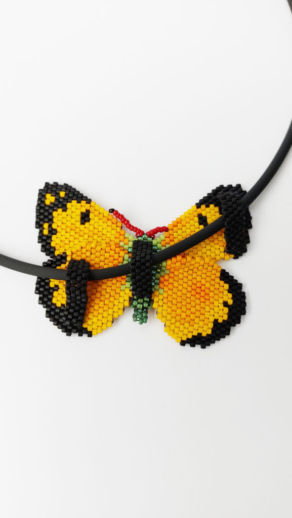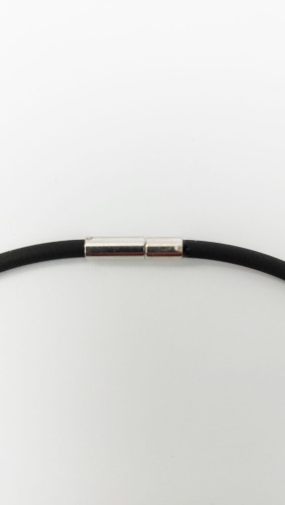 De sluiting is gemaakt van roestvrij staal, dus ook bij een gevoelige huid veilig te dragen. De lengte van de (caoutchouc) ketting is circa 45 cm. Er zijn bijna 1200 kraaltjes verwerkt in dit sieraad.