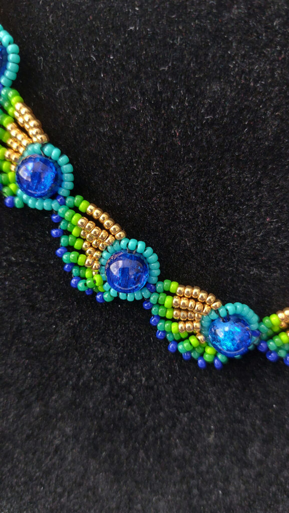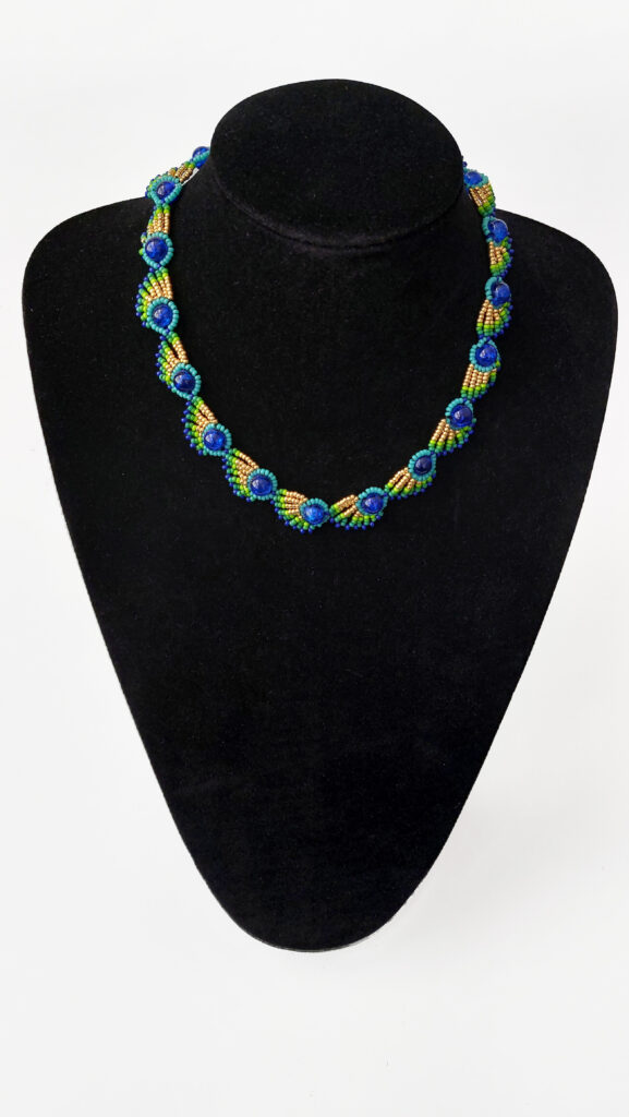 De ogen van pauwenveren zijn ware juweeltjes. In deze ketting zijn ze aaneengeregen en vormen zo een prachtig sieraad.